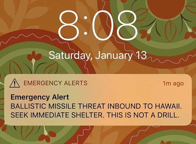 It read: 'BALLISTIC MISSILE THREAT INBOUND TO HAWAII. SEEK IMMEDIATE SHELTER. THIS IS NOT A DRILL'.